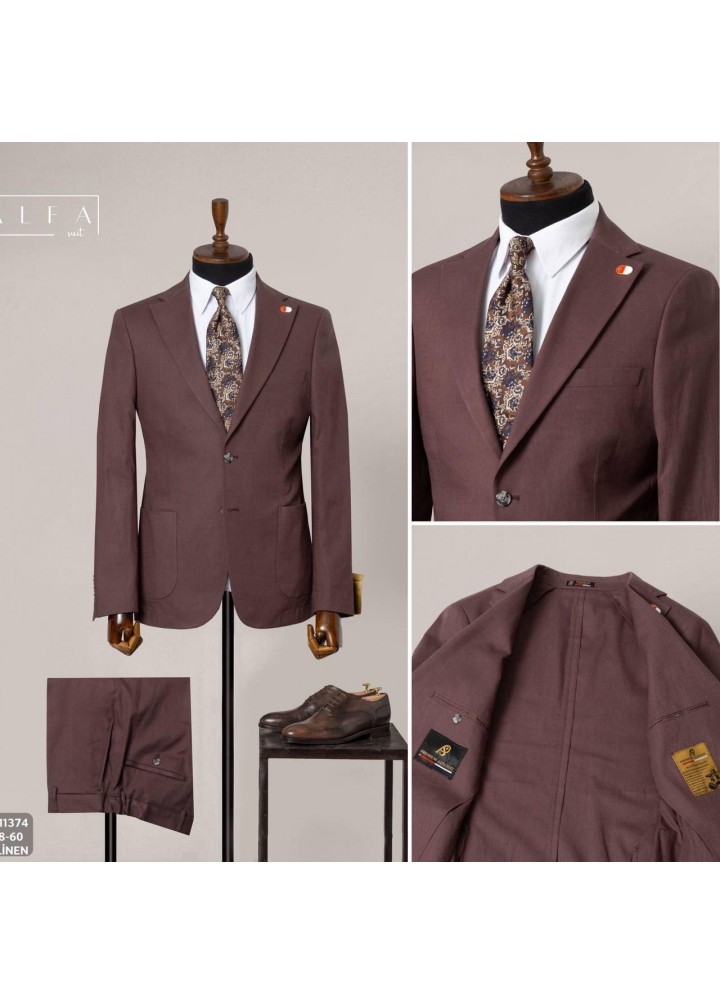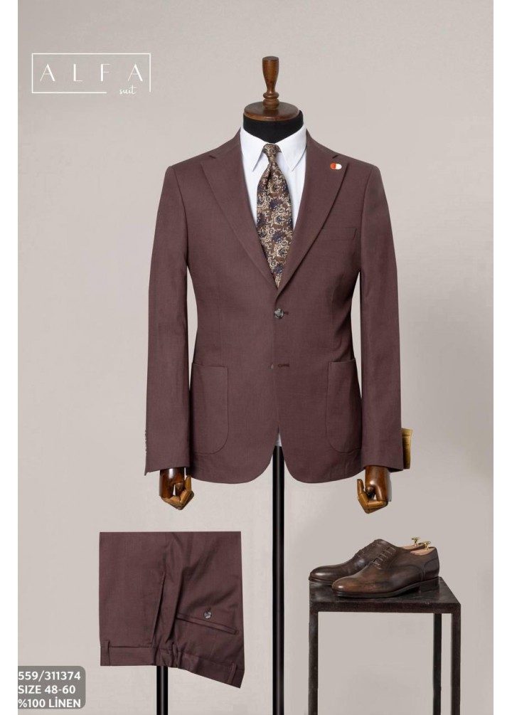 %100 Pamuk Keten Erkek Takım Elbise – Bordo
