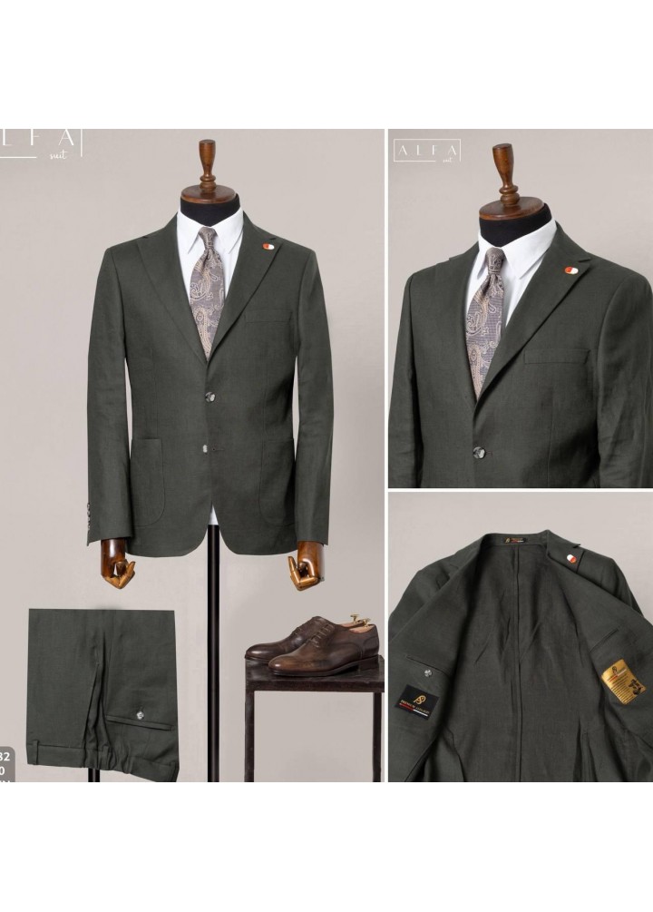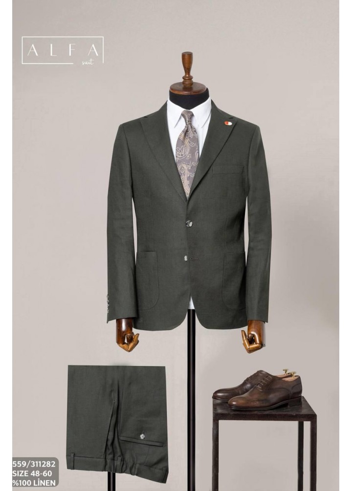 Bu özel haki takım elbise, yaz sezonuna uygun %100 keten kumaşı ile hem doğal hem de şık bir görünüm sunar. Hafif yapısı sayesinde sıcak havalarda ferahlık sağlar; nefes alan dokusu ile gün boyu konfor sunar.