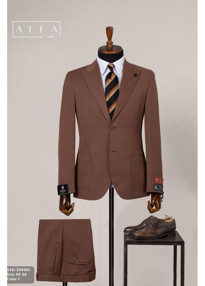 Modern erkeğin stil anlayışına hitap eden bu slim fit kahverengi takım elbise, hem iş hayatında hem özel davetlerde şıklığınızı ön plana çıkarır. Yüksek kaliteli kumaşı ve özenli dikiş detaylarıyla gün boyu konfor sağlarken, zarif tasarımı ile dikkat çeker. Kombin kolaylığı sağlayan klasik çizgileriyle gardırobunuzun vazgeçilmezi olacak.